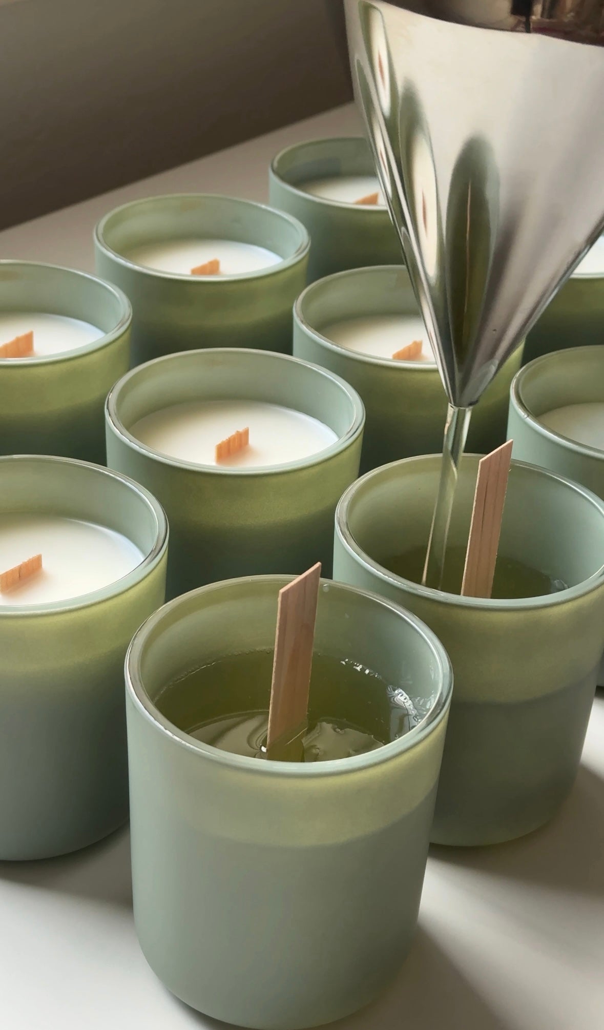 Customized candles, hand-poured in small batches with coconut-apricot wax and premium fragrance oils.